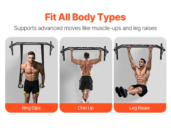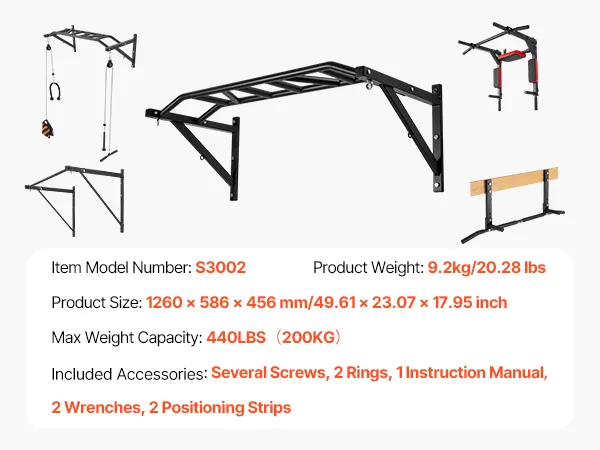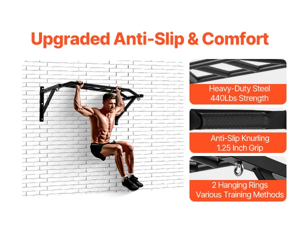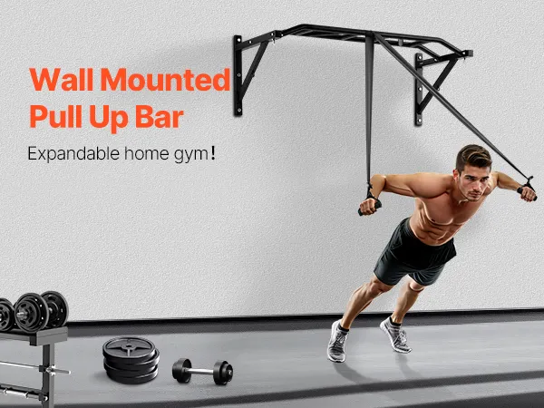 VEVOR Klimmzugstange Pull up Bar zur Wandmontage, 127 cm breite, multifunktionale Oberkörper-Trainingsstangen aus Stahl mit Aufhängern, Klimmzug-Trainingsstation (200 kg belastbar), Fitnessstudio