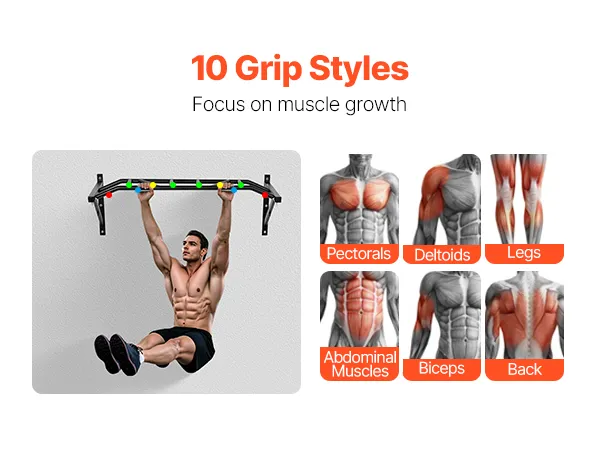 Die robuste Klimmzugstange bietet 10 verschiedene Griffpositionen, sodass Sie durch individuelles Training mehrere Muskelgruppen gezielt ansprechen können, um die beste Körperhaltung und maximale Kraft zu erreichen.