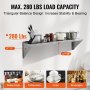 Unser 12-Zoll-Edelstahlregal von VEVOR besteht aus massivem 430er Edelstahl. Dies gewährleistet Haltbarkeit und Langlebigkeit. Die dreieckige Konstruktion (11 x 9 Zoll) bietet außergewöhnliche Stabilität. Es kann bis zu 280 Pfund Gewicht tragen, ohne durchzuhängen oder sich zu verbiegen. Diese robusten Wandregale sind ideal für Großküchen, Restaurants, Bars, Privathaushalte und Hotels. Sie bieten eine zuverlässige Aufbewahrungslösung für schwerere Gegenstände.