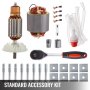Es gibt ein Standard-Zubehörset für Sie, das einen Ersatzmotor, zwei Schienen, eine Messerabdeckung, zwei Ersatz-Kohlebürsten usw. enthält, um Ihnen viele latente Probleme zu ersparen.