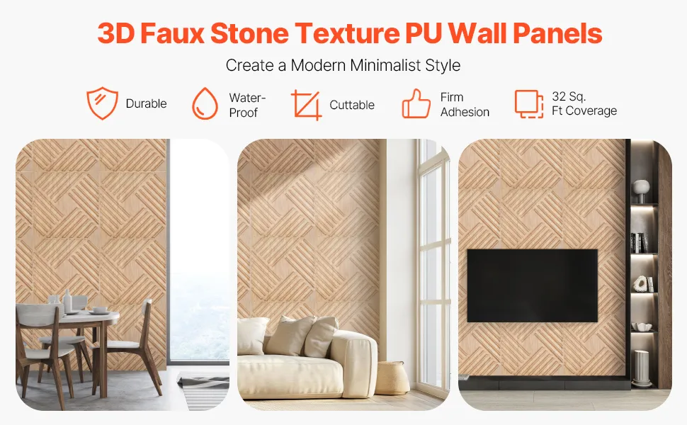 Unsere Wanddekorpaneele eignen sich für Wohnzimmer, Schlafzimmer und Unterhaltungsbereiche. Mit Optionen, die eine leichte Wasserabdichtung beinhalten, können Sie sie sogar in Außenkorridoren installieren und so jeder Umgebung Stil und Schutz verleihen.