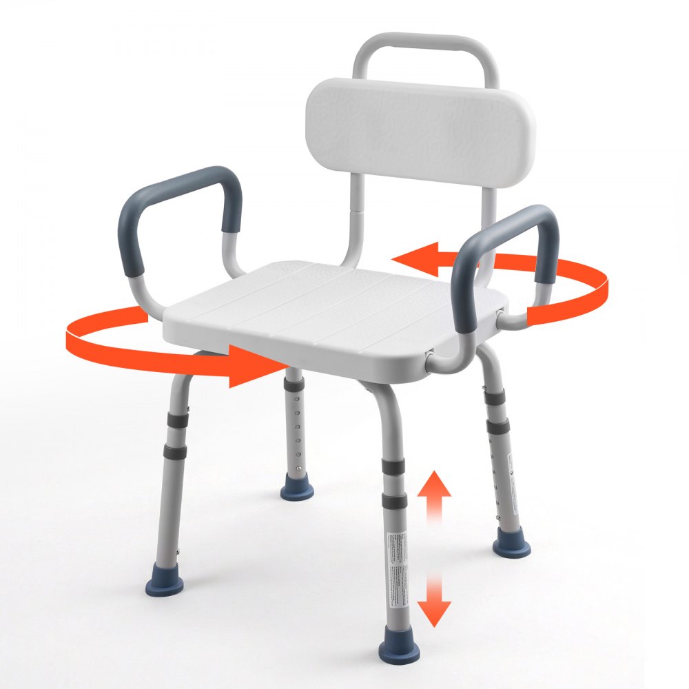 VEVOR Swivel Shower Chair with Arms and Back, 180 kg Load Heavy Duty Bench Seat for Inside Shower Stall and Bathtub, Height Adjustable Bathroom Bath Tub Seat for Adults, Seniors, Elderly and Disabled