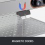 Dieser 800W-Speisenwärmer besteht aus Edelstahl 304 und gehärtetem Glas und ist langlebig und stabil. Magnetische Türen ermöglichen eine verbesserte Abdichtung von Türen und einen einfachen Zugang zu Lebensmitteln. Mit einer einstellbaren Temperatur von 30-85 °C (86-185 °F) eignet es sich für verschiedene Lebensmittel, einschließlich Pizza, Kuchen, Burger usw.