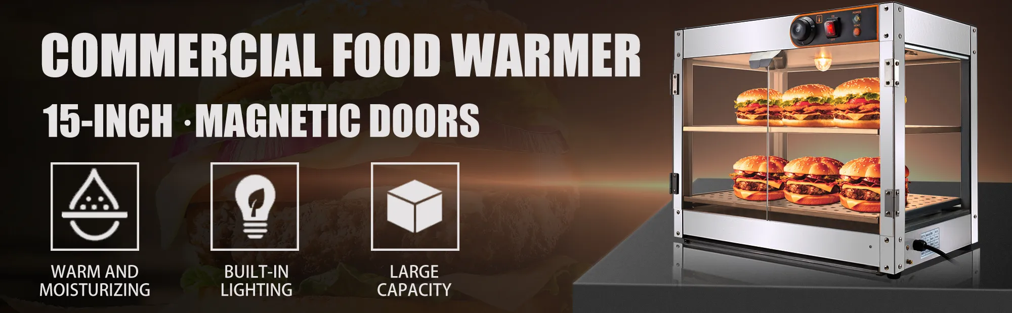 Zum Aufbewahren von Pizza, Eierkuchen, gebratenes Huhn, Hamburger usw. Weit verbreitet in einer Vielzahl kommerzieller Catering-Umgebungen, einschließlich Kantinen, Bäckereien, Cafés, Fast-Food-Restaurants usw.
