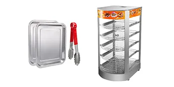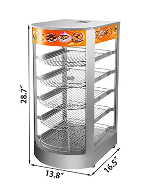 5 Ebenen von Racks bestehen aus 5 Edelstahldrahtwannen. Die Tabletts können ein- und ausgezogen werden und bieten eine größere Kapazität an Pastetchenwärmer.