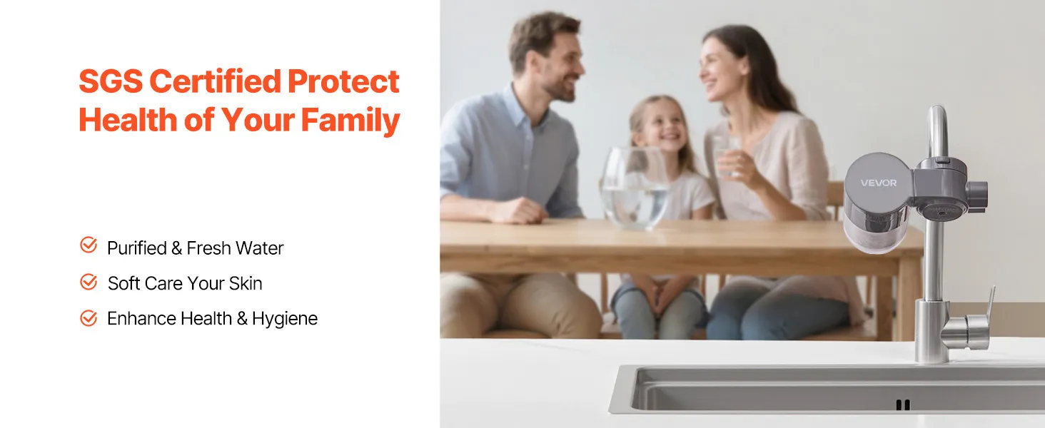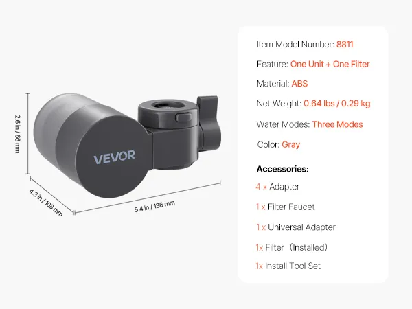 Der Wasserhahnfilter reinigt und enthärtet das Wasser, filtert und entfernt schädliche Verunreinigungen und sorgt so für wohlschmeckendes, reines und weiches Wasser. Er arbeitet bei einer Temperatur von 5 bis 38 °C und einem Druck von 0,1–0,4 MPa.