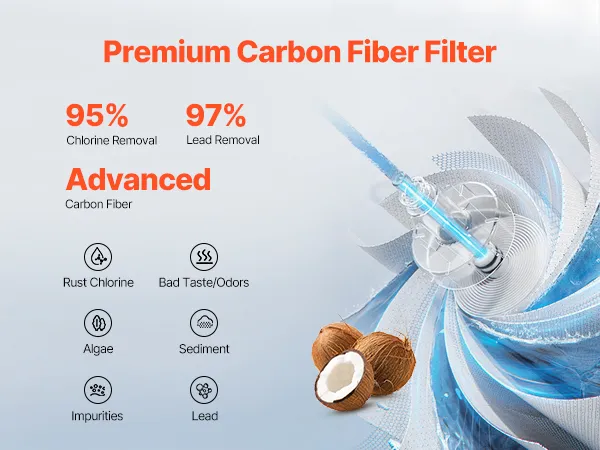 Ausgestattet mit einem Kohlefaserfilter entfernt es Chlorgeruch aus dem Wasser und filtert Verunreinigungen effektiv heraus, sodass Sie reines Wasser erhalten.