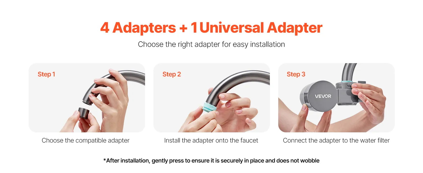 Der Spülwasserreiniger enthält 4 Adapter und 1 Universaladapter zur einfachen Auswahl. Wählen Sie den richtigen Adapter und Sie können die Installation innerhalb von 5 Minuten abschließen.