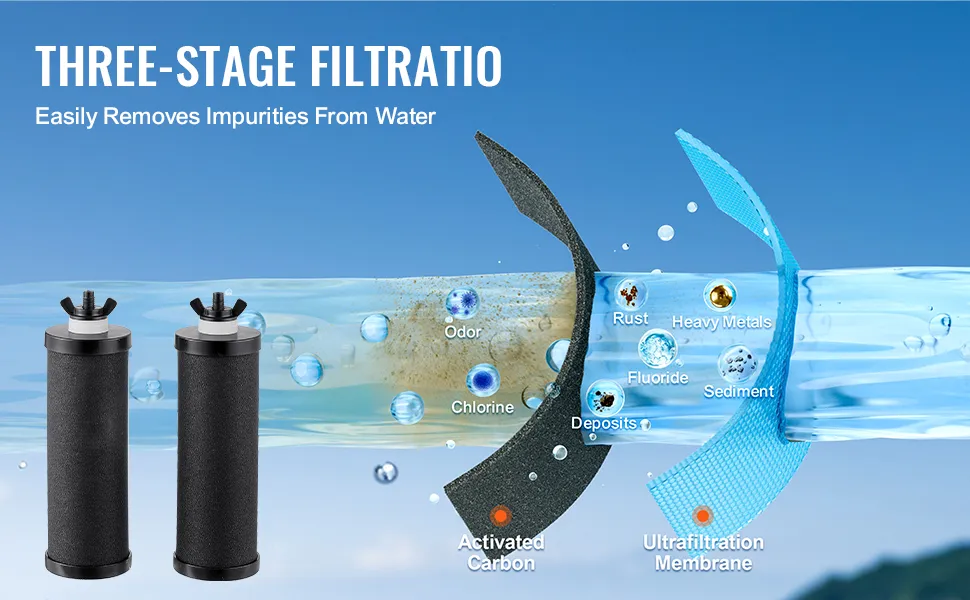 Effiziente Filtration: Das Schwerkraft-Wasserfiltersystem verwendet Aktivkohle + Ultrafiltrationsmembran als Filtermedium, entfernt 99 % des Chlors aus dem Wasser und verbessert den Geschmack. Es reduziert auch Schwermetalle, Sedimente, Rost, Erde und andere Verunreinigungen und sorgt so für sauberes und gesundes Wasser.