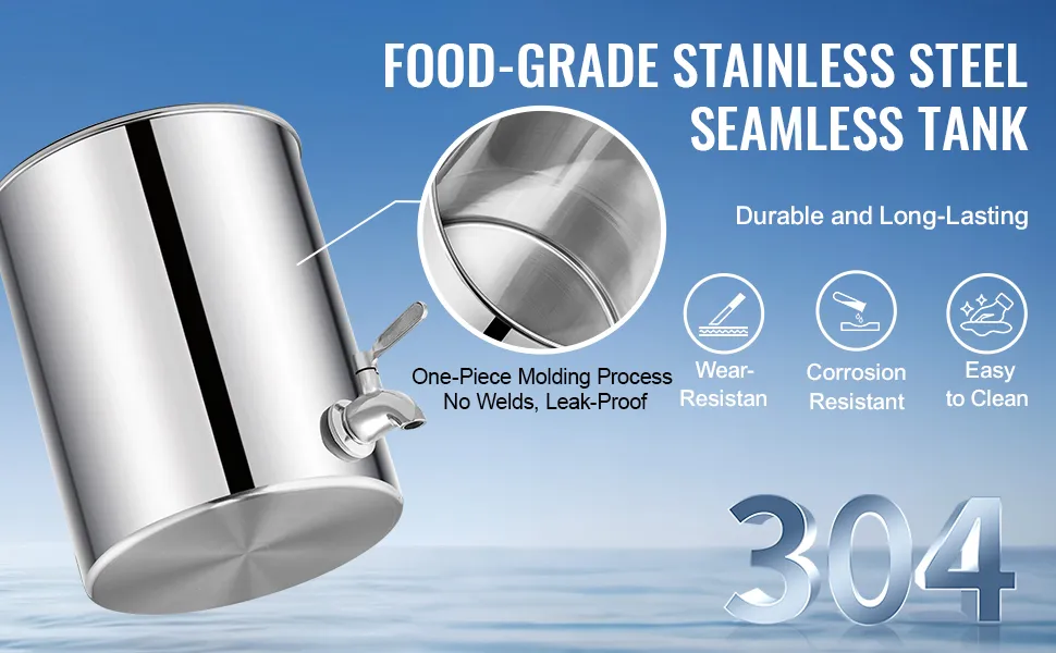 Er besteht aus lebensmittelechtem Edelstahl SUS304 und ist dick, robust und langlebig. Er wird in einem nahtlosen Streckverfahren ohne Schweißnähte oder Leckagen hergestellt, was das Risiko von Leckagen erheblich reduziert und langfristige Stabilität und Sicherheit gewährleistet.