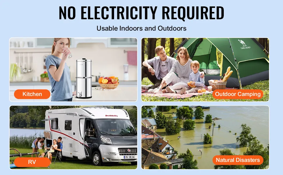 Es ist einfach zu installieren und benötigt weder Strom noch Werkzeuge oder Wasserleitungen. Es eignet sich für verschiedene Umgebungen und sorgt für sauberes, frisches Trinkwasser beim Campen, Angeln, Wandern, Leben ohne Strom und in Notsituationen.