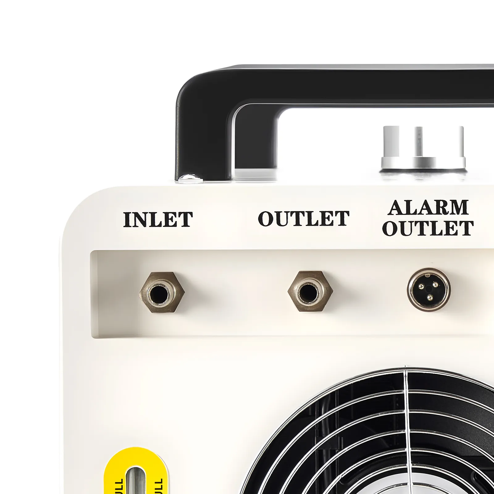 Ausgestattet mit einem Kompressor und einer Wasserpumpe zur schnellen Wärmeableitung von Lasergravierern und CNC-Maschinen. Mit Konstanttemperaturmodus, intelligentem Steuerungsmodus und umfassenden Alarmfunktionen eignet es sich ideal zur Kühlung von 90–150-W-Laserröhren.