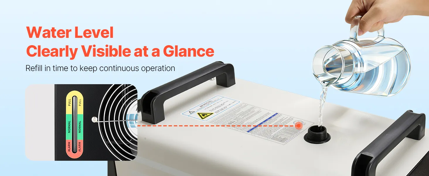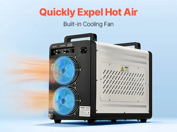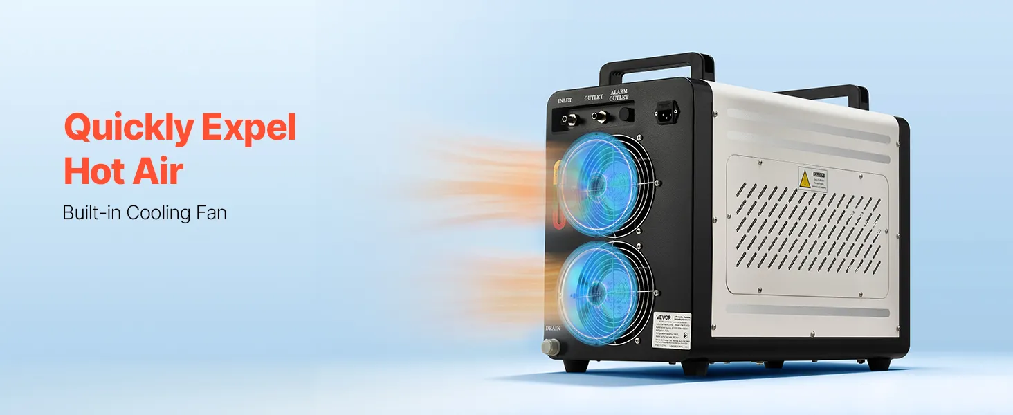 Fast Circulation, Consistent Cooling: With a 1.8 gal (7L) tank and a maximum flow rate of 4.2 GPM (16 L/min), this industrial chiller circulates quickly to dissipate heat efficiently. The clear viewing window lets you know exactly when to refill