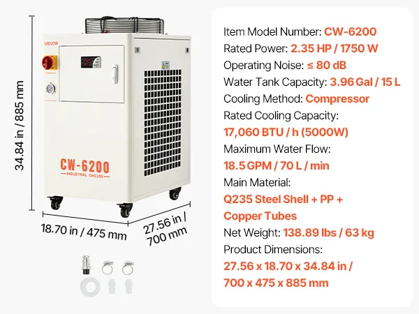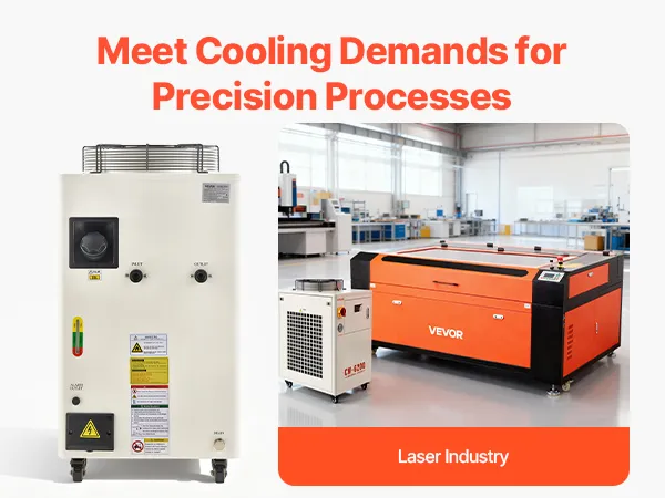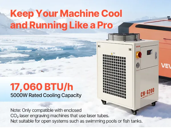 Ausgestattet mit einem Kompressor und einer Wasserpumpe zur schnellen Wärmeableitung von Lasergravierern und CNC-Maschinen. Mit Konstanttemperaturmodus, intelligentem Steuerungsmodus und umfassenden Alarmfunktionen eignet es sich ideal zur Kühlung einer 450-W- oder zweier 200-W-Laserröhren.
