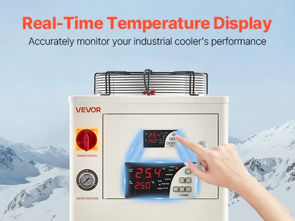 Unser Industrie-Wasserkühler ist mit einem präzisen Temperaturmonitor ausgestattet, der die aktuelle Wassertemperatur übersichtlich auf dem Display anzeigt. So behalten Sie den Betriebszustand Ihres Kühlers jederzeit genau im Blick.