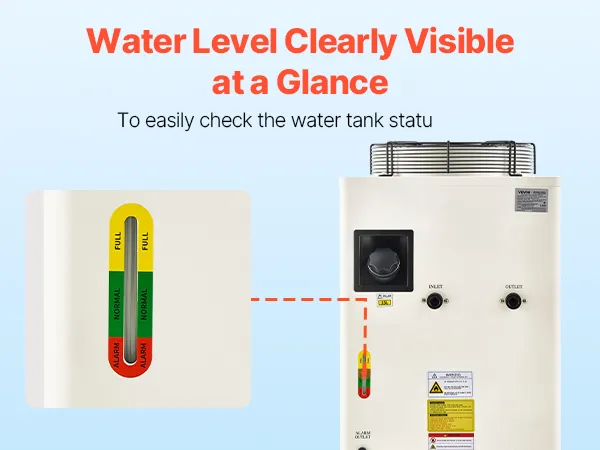 Die industrielle Kältemaschine verfügt über ein gut sichtbares Wasserstandsfenster, sodass Sie jederzeit erkennen können, wann Wasser nachgefüllt werden muss. Verabschieden Sie sich von ständigen Kontrollen und genießen Sie eine kontinuierliche, unterbrechungsfreie Kühlleistung.