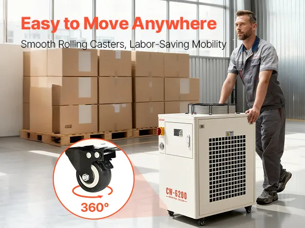 Unser industrieller Wasserkühler verfügt über Standard-Ein- und Auslassdurchmesser und ist mit den meisten Lasergravierern, CNC-Maschinen und anderen Industrieanlagen kompatibel. Er gewährleistet einen einfachen Anschluss ohne zusätzliche Adapter.