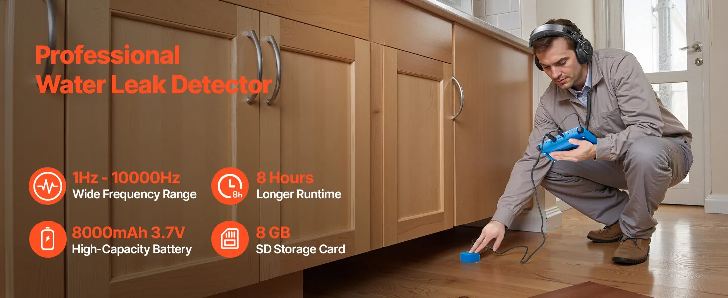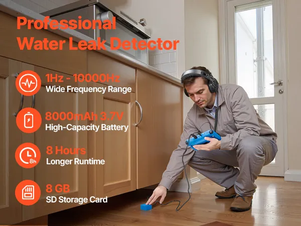 Ausgestattet mit horizontalen und vertikalen Sensoren ist dieser Rohrleitungsleckdetektor für die meisten Innenräume im Haushalt geeignet. Er erkennt Rohrleitungslecks präzise, spart Wasserressourcen, verlängert die Lebensdauer der Rohrleitung und reduziert Verluste.