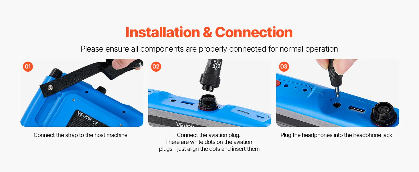 Präzise Erkennung: Mit einem breiten Frequenzbereich von 1 Hz – 10000 Hz und einer Erkennungstiefe von bis zu 0,5 m (1,64 Fuß) filtert der VEVOR-Rohrwasserleckdetektor Störsignale effektiv heraus und erfasst präzise die durch Wasserlecks verursachten Vibrationsfrequenzen