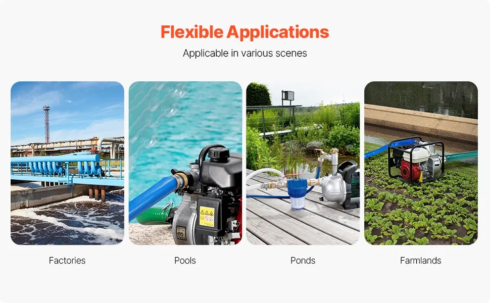 Breite Anwendung: Das Schlauchset ist für eine Vielzahl von Pumpen geeignet und kann schnell an Pumpen angepasst werden, die in verschiedenen Szenarien auf dem Markt verwendet werden. Das Schlauchset ist für Fabriken, Ackerland, Schwimmbäder, Baustellen und andere Szenarien zur Wasserableitung, Abwasserentsorgung, Bewässerung und zum Pumpen von Wasser mit einer Vielzahl von flüssigen und festen Materialien geeignet.