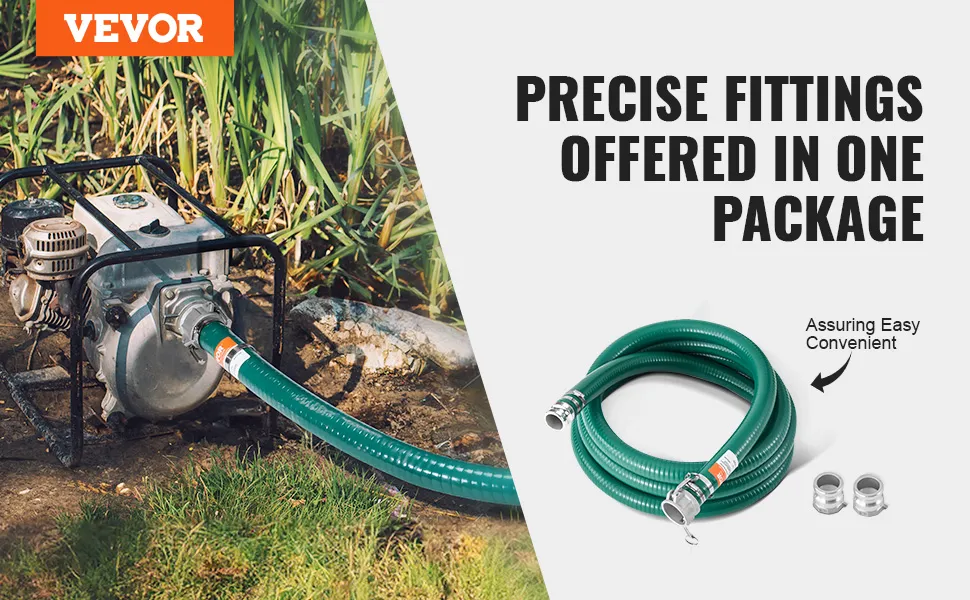 VEVOR Saugschlauch, 50,8 mm x 6,1 m, Pumpenschlauch, mit Camlock-Anschlüssen & Aluminiumbeschlägen, passend für verschiedene Pumpen, zur Abwasseraufbereitung, Wassertransport & weiteren Zwecken