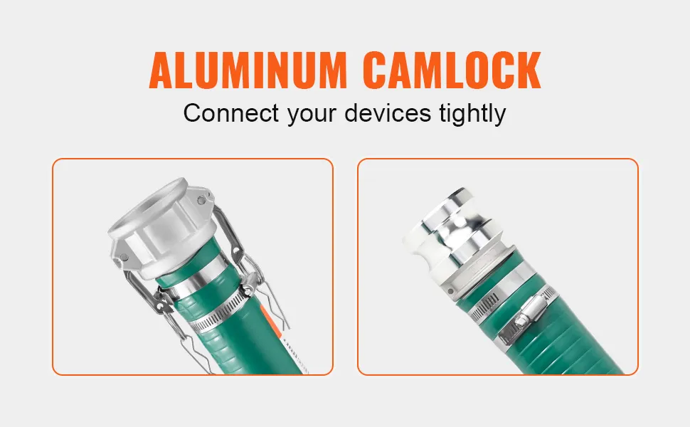 Die Aluminium-Camlocks des Saugschlauch-Kits sind zuverlässig und halten hohem Wasserdruck stand, ohne zu platzen oder undicht zu werden.