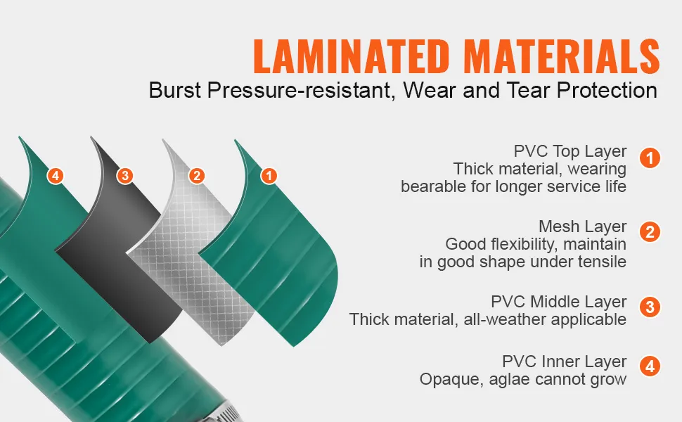 Hochwertiges Material: Das Saugschlauch-Set hält vollem Saug- und Auslassdruck stand und ermöglicht die Übertragung einer breiten Palette von flüssigen und festen Materialien wie Wasser, Schlamm, Abwasser, Luft, Chemikalien, Körnern und Partikeln, ohne dass eine Verstopfung durch Verunreinigungen befürchtet werden muss.