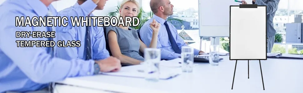Dieses Staffelei-Whiteboard besteht aus einem Rahmen aus gehärtetem Glas und einer Aluminiumlegierung, der sich durch hohe Festigkeit, geringes Gewicht und Korrosionsbeständigkeit auszeichnet, robust und langlebig ist. Die Höhe dieser Flipchart-Staffelei kann angepasst werden, sowohl für Kinder als auch für Erwachsene. Das Whiteboard mit Staffelei hat eine abwischbare Oberfläche, ist stabil und tragbar und wird häufig in Büros, Schulen, Labors und Privathaushalten verwendet.