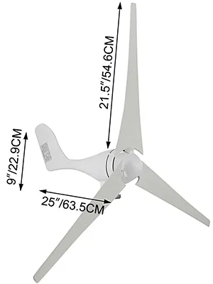 Die Auflistung bezieht sich auf den modischen weißen 3-Blatt-Windturbinengenerator 100 W mit wasserdichtem Laderegler. Ausgestattet mit qualitativ hochwertigen Blättern und einem Dreiphasen-Permanentmagnetmotor, zeichnet er sich durch eine niedrige Startwindgeschwindigkeit, geringe Vibrationen und einen niedrigen Geräuschpegel aus und kann außerdem die Windenergienutzung und die jährliche Stromerzeugung steigern. Er ist eine gute Wahl für den Heimgebrauch, die Überwachung, den Einsatz auf Booten/Marinen und vieles mehr.