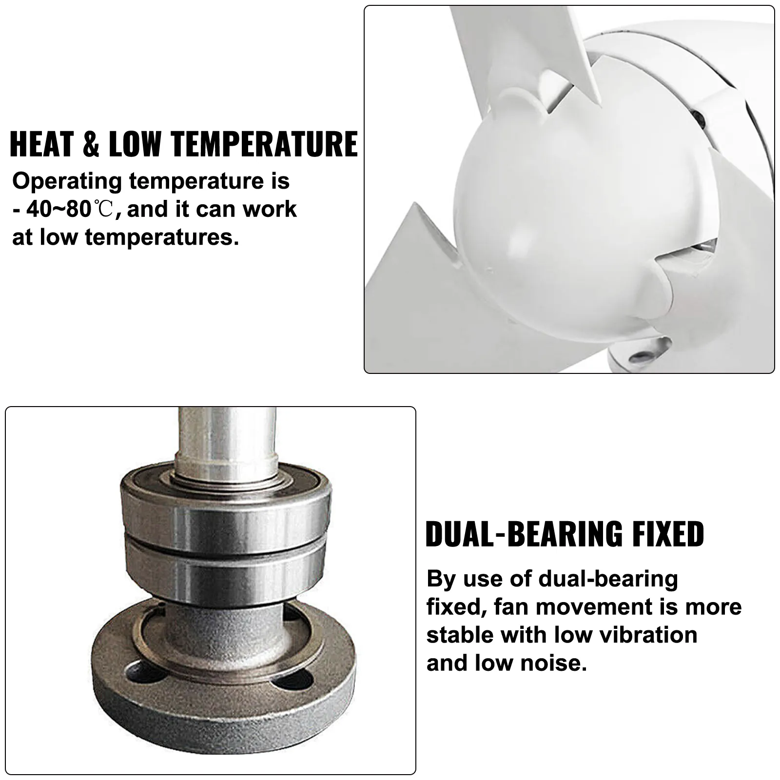 Die Blätter verwenden verstärkte Nylonfasern und helfen durch eine optimierte Struktur und aerodynamische Form, den Drehmomentwiderstand effektiv zu reduzieren und Stabilität zu gewährleisten.