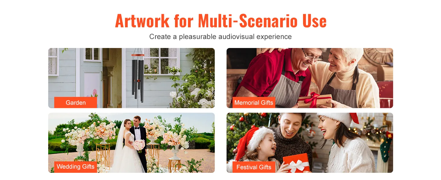 Windspiele für draußen sind eine wunderbare Wahl für Momente wie Beileid, Jubiläen, Thanksgiving oder Weihnachten. Die beruhigenden, wiegenden Töne können schöne Erinnerungen zurückbringen und ein Gefühl von Zugehörigkeit und Nostalgie vermitteln.