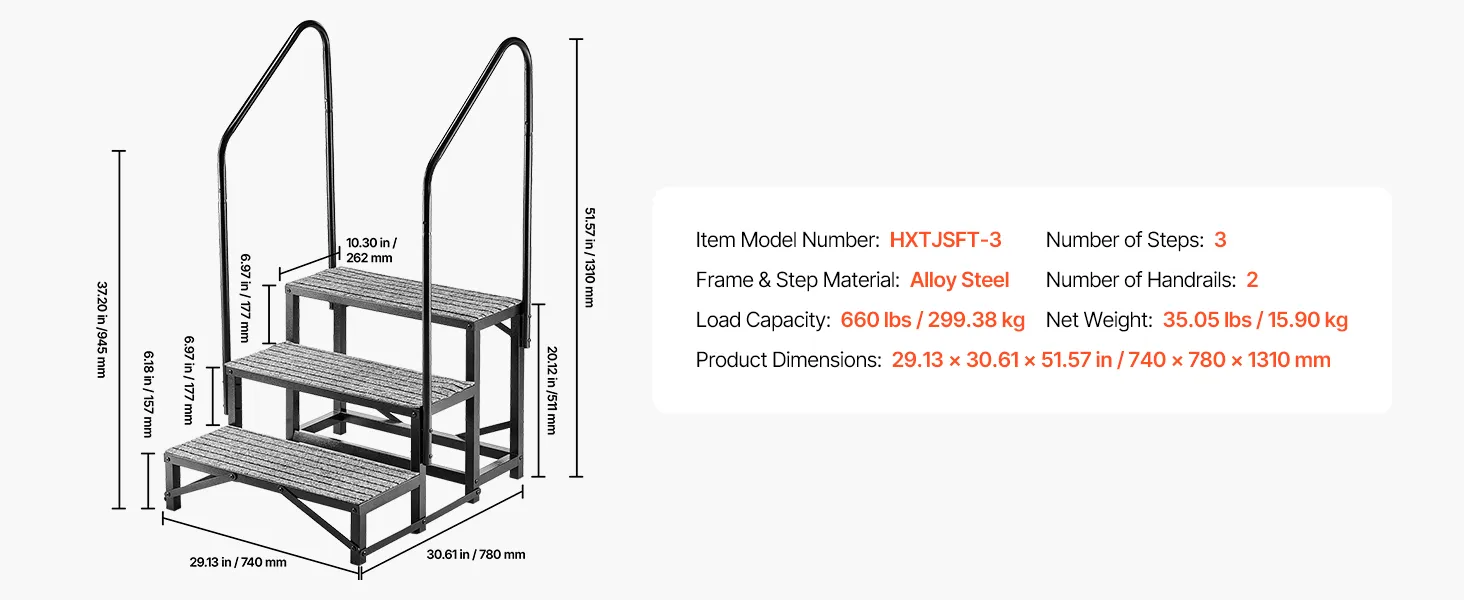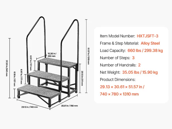 VEVOR Wohnmobiltreppe mit 2 Handläufen (3 Stufen), Standtreppe mit 300 kg Tragkraft, Außentreppe mit Rutschfester Matte für Senioren/Haustiere, Trittstufe für Camper, Mobilheim, Veranda, Pool und Spa