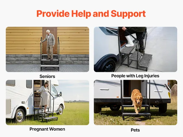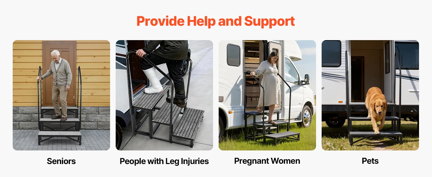 Diese Treppe ist die ideale Lösung für Wohnmobile, Außen-Spas, Häuser oder Pools. Sie erleichtert Senioren, Schwangeren und Kindern den sicheren Auf- und Abstieg. Auch für Personen mit Knieverletzungen bietet sie eine spürbare Unterstützung im Alltag.