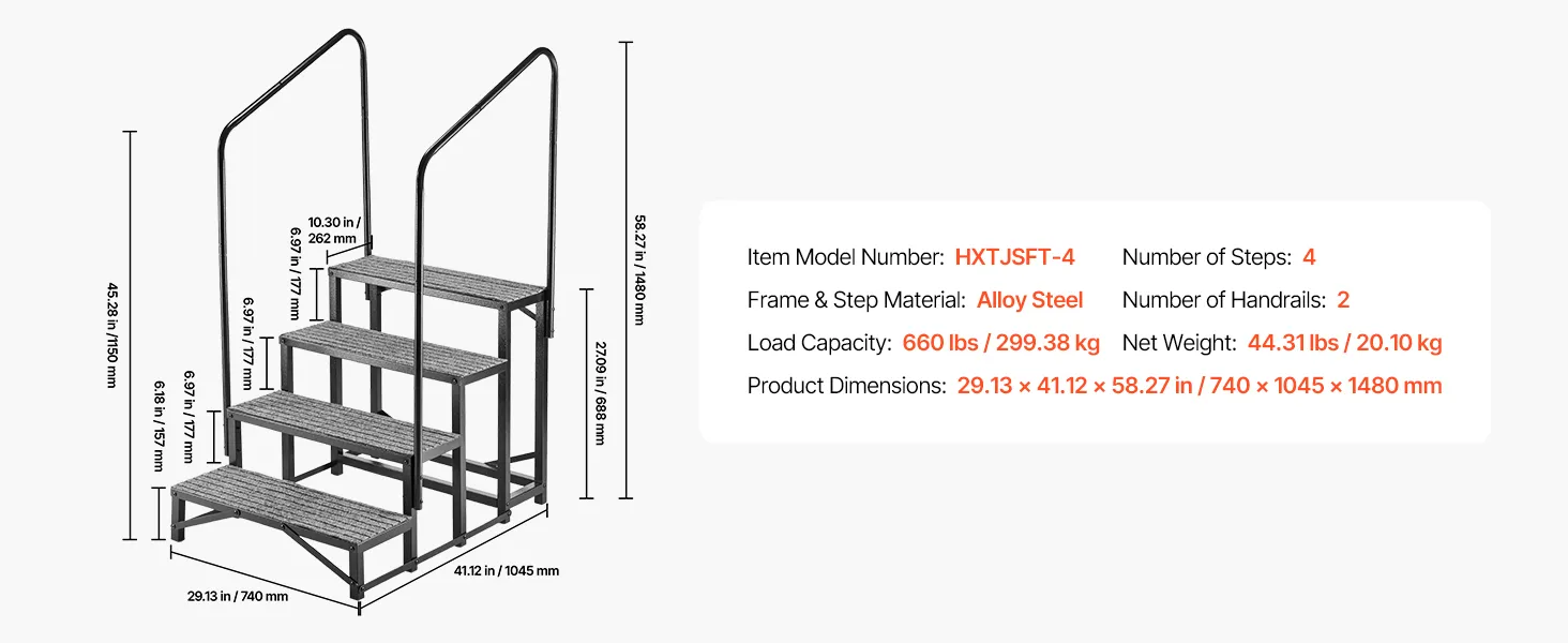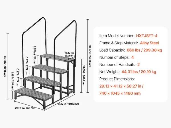 VEVOR Wohnmobiltreppe mit 2 Handläufen (4 Stufen), Standtreppe mit 300 kg Tragkraft, Außentreppe mit Rutschfester Matte für Senioren/Haustiere, Trittstufe für Camper, Mobilheim, Veranda, Pool und Spa