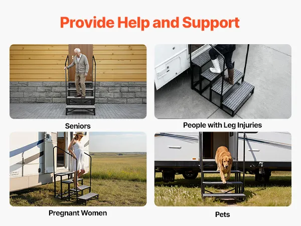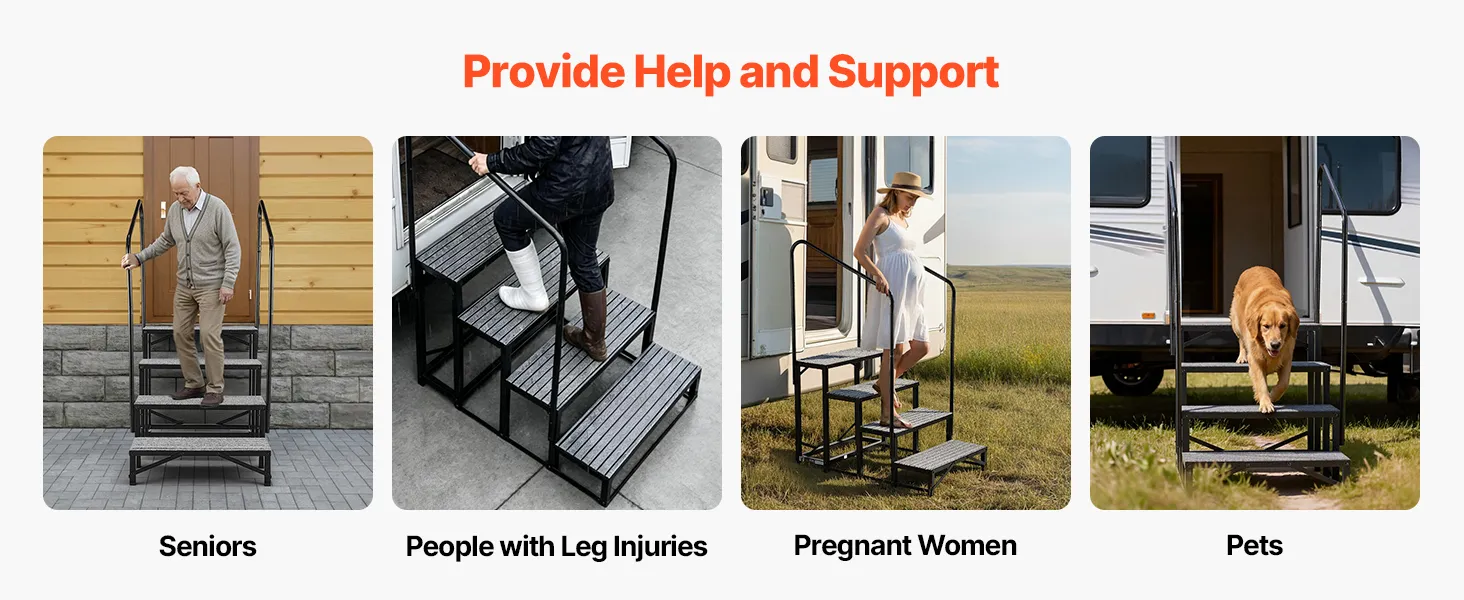 Diese Treppe ist die ideale Lösung für Wohnmobile, Außen-Spas, Häuser oder Pools. Sie erleichtert Senioren, Schwangeren und Kindern den sicheren Auf- und Abstieg. Auch für Personen mit Knieverletzungen bietet sie eine spürbare Unterstützung im Alltag.