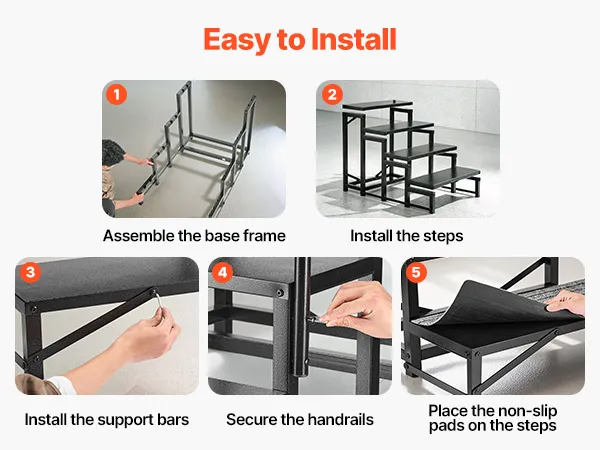 Rutschfestes Design: Jede Stufe verfügt über eine rutschfeste Unterlage. Dies sorgt für maximale Stabilität beim Treppensteigen. Das Design trägt entscheidend dazu bei, das Ausrutsch- und Verletzungsrisiko effektiv zu verringern