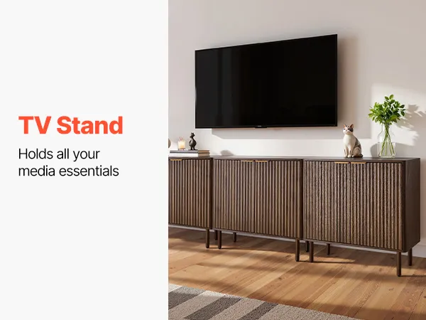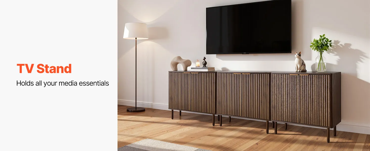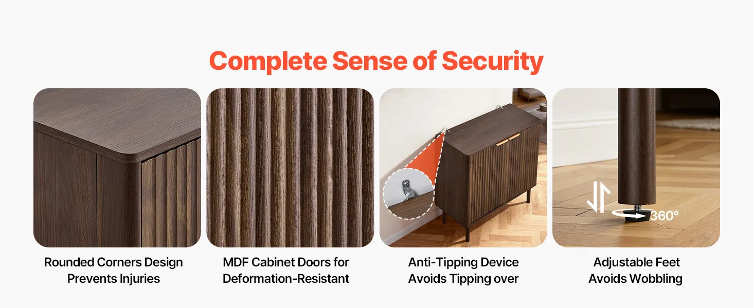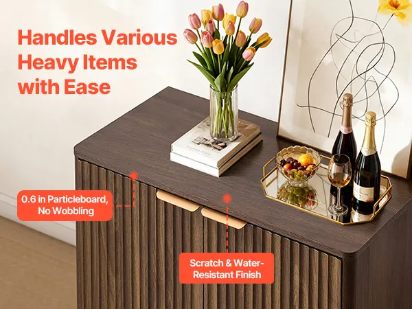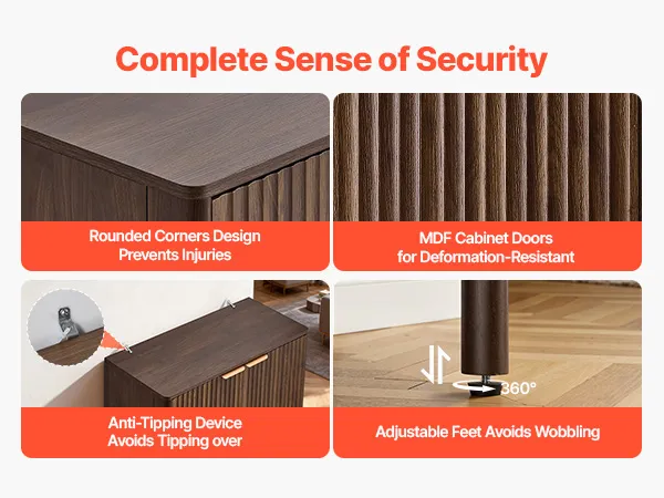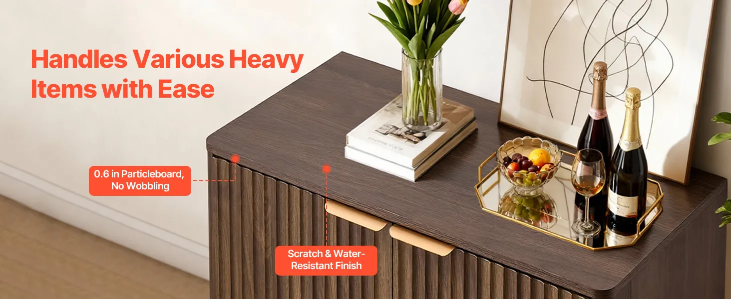 Verschönern Sie Ihr Zuhause mit diesem eleganten Buffet. Es eignet sich ideal für Wohnzimmer, Küche, Eingangsbereich oder Flur. Er bietet Platz für Kaffeemaschine, Geschirr, Fotos und Dekoartikel. Gefertigt aus 0,6 Zoll (1,5 cm) dicker Spanplatte und mit einem Kippschutz für sicheren Stand.