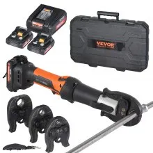 VEVOR crimping tool and battery set, Pro crimping tool, electric pipe crimping tool with M15, M22, and M28 jaws, crimping tool set with 2 x 18V 4.0Ah batteries, fast charger, and carrying case