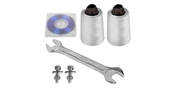 Zwei Rollen auswechselbare Garne sind im Lieferumfang enthalten. Ein Montagewerkzeug und eine CD helfen Ihnen beim Einrichten und Benutzen der Maschine. Eine zeitsparende und langlebige Wurstbindemaschine.