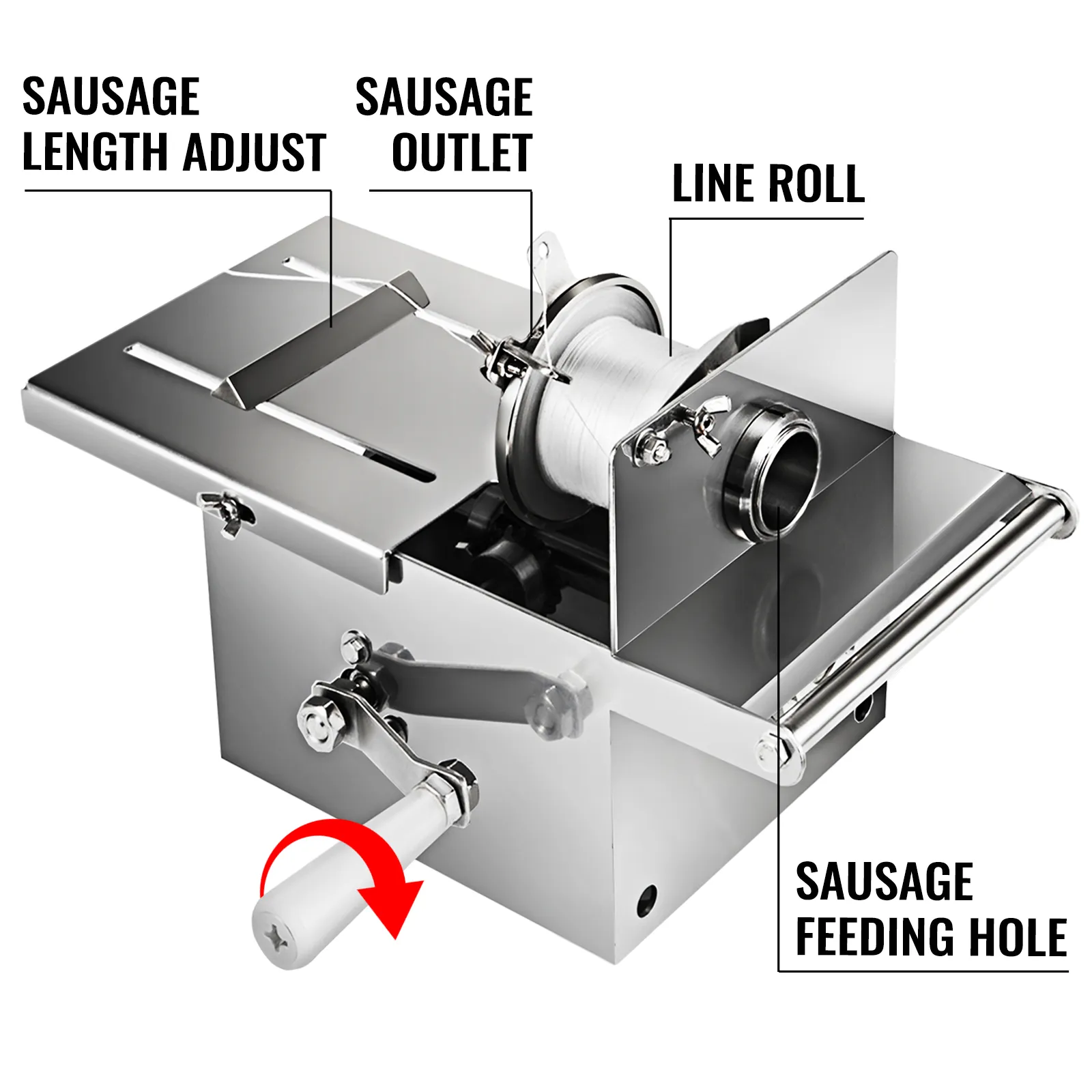 Wir brauchen nur einen Arbeiter, um zu arbeiten. Ein bequemer Handgriff rollt leicht ab und spart Ihre Kraft. Die Wurstlänge kann nach Ihren Bedürfnissen eingestellt werden.