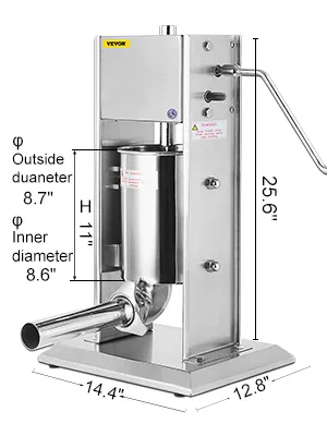 - Diese Wurstfüllmaschine ist aus rostfreiem Stahl gefertigt und kann auf schnelle oder langsame Geschwindigkeit eingestellt werden. Ausgestattet mit einem ergonomischen Griff für eine einfachere, effizientere und bequemere Bedienung. Es ist nicht nur für Sie geeignet, um köstliche und frische Würste für Ihre Familie zu machen, sondern auch perfekt für den kommerziellen Gebrauch, wie Supermärkte, Metzgereien oder Fleischliebhaber.