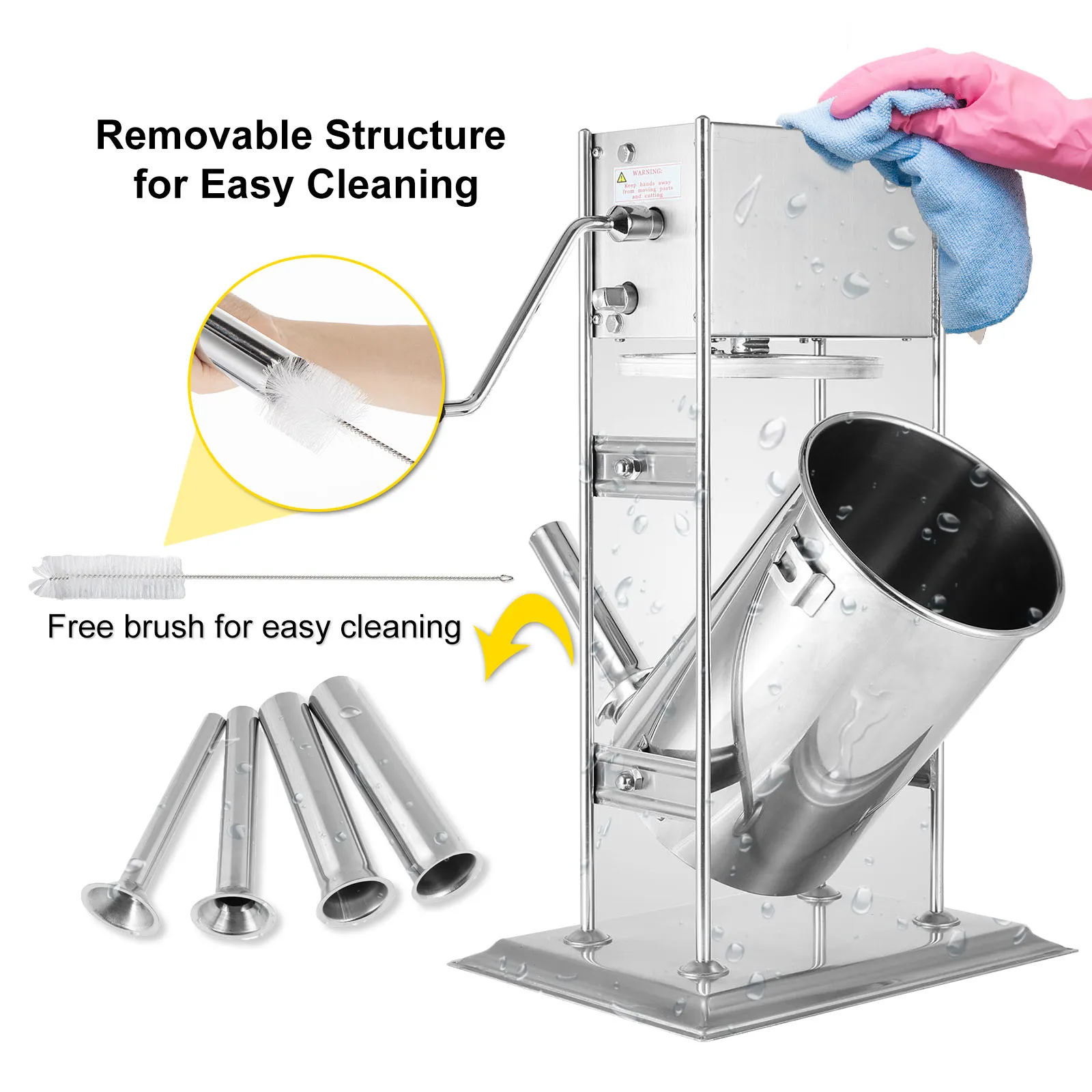 Fünf verschiedene Wurstfüllrohre mit unterschiedlichen Durchmessern im Lieferumfang enthalten, mit denen Sie bequem Würstchen in verschiedenen Größen herstellen können. Es ist sehr geeignet für den Einsatz in Küchen, Bars, Restaurants und vielen anderen Lebensmittelverarbeitungsbetrieben.