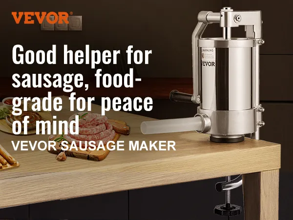 Der VEVOR-Wurstfüller verwendet FDA-zertifizierte Materialien. Er garantiert Sicherheit für alle Benutzer. Der Körper besteht aus lebensmittelechten Materialien, ist verschleißfest und langlebig. Es sind keine schädlichen Substanzen vorhanden. Dies gewährleistet die Sicherheit Ihrer selbstgemachten Würste. Sogar Säuglinge und schwangere Frauen können ihn sicher verwenden. Machen Sie ohne Bedenken köstliche Würste. Das Material gewährleistet eine lange Nutzungsdauer. Sie schützen Ihre Lieben.