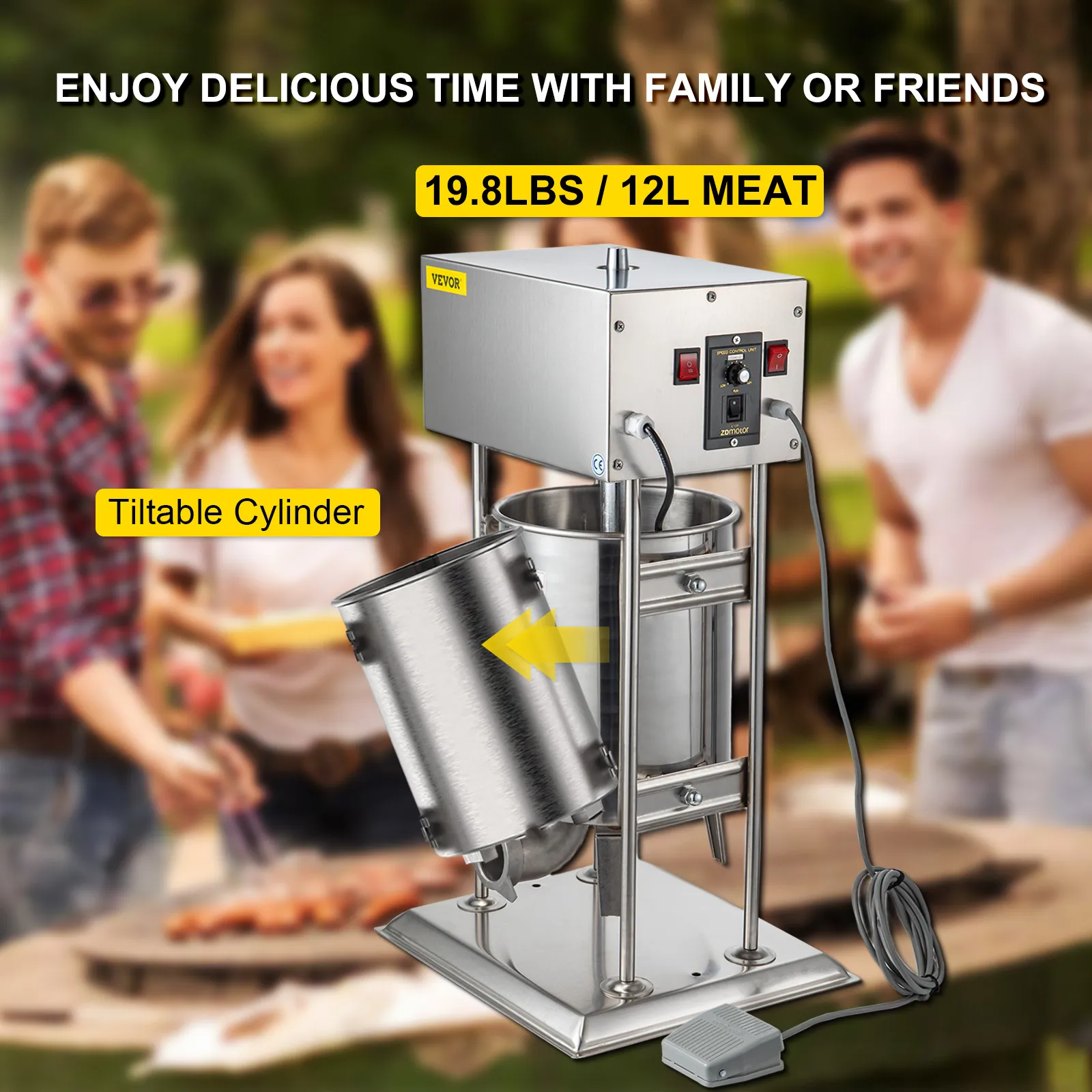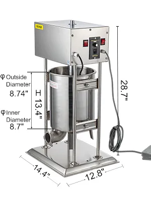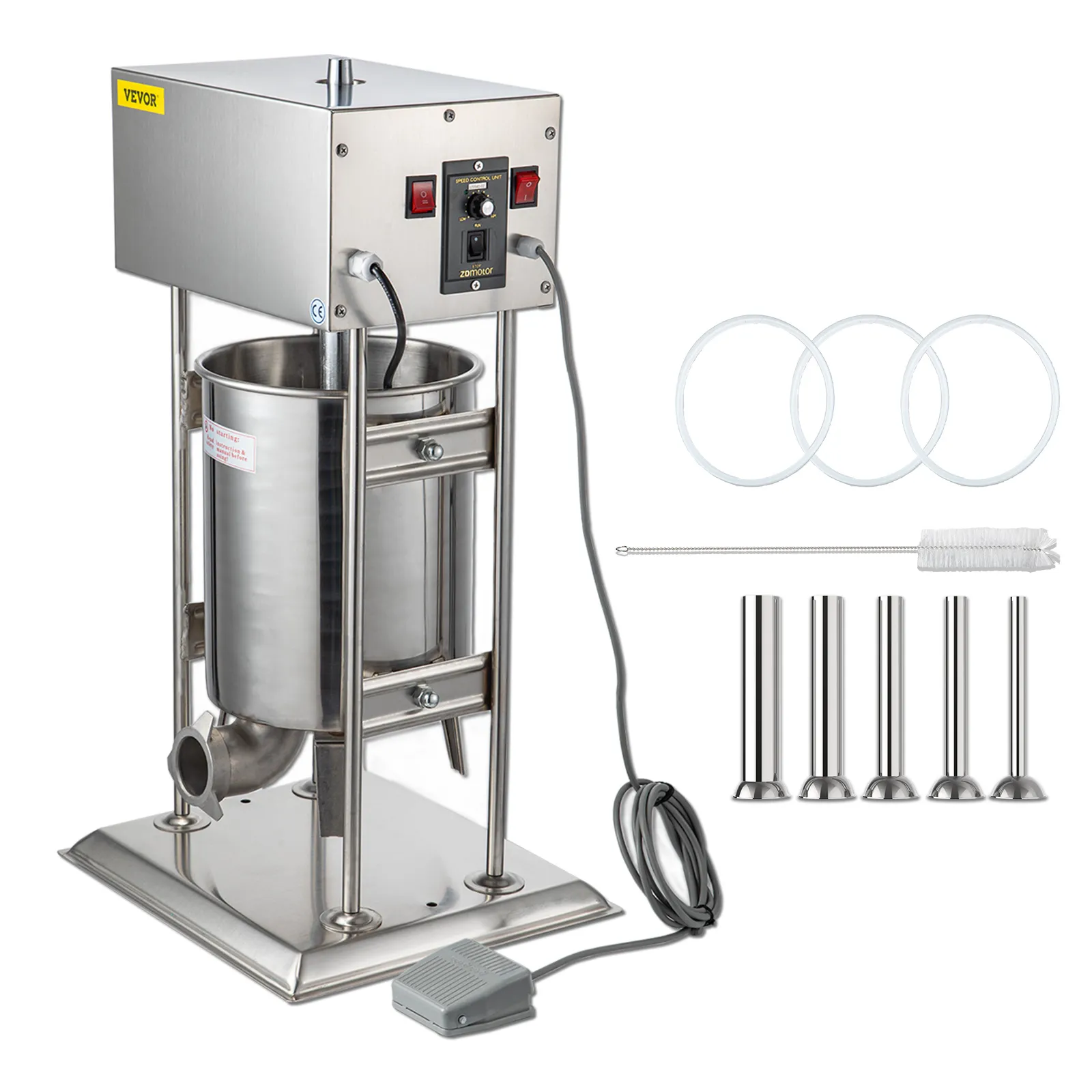 Diese elektrische Wurstfüllmaschine ist aus rostfreiem Stahl gefertigt und kann in der Geschwindigkeit reguliert werden. Der Fußschalter ermöglicht eine freihändige Bedienung, sodass eine Person den gesamten Prozess alleine durchführen kann. Sie eignet sich nicht nur für die Herstellung von leckeren und frischen Würsten für Ihre Familie, sondern auch für den kommerziellen Einsatz, z. B. in Supermärkten, Metzgereien oder bei Fleischliebhabern.