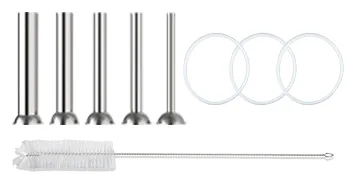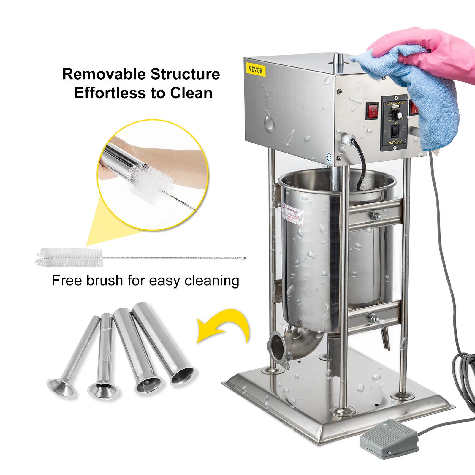 Fünf verschiedene Wurstfüllrohre mit unterschiedlichem Durchmesser im Lieferumfang enthalten, mit denen Sie bequem Würstchen in verschiedenen Größen herstellen können. Es ist sehr geeignet für den Einsatz in Küchen, Bars, Restaurants und vielen anderen Lebensmittelverarbeitungsbetrieben.
