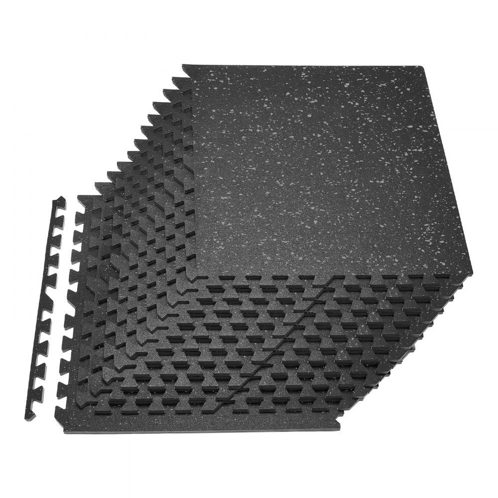 VEVOR 24 x Puzzlematte Bodenschutzmatte 610 x 610 x 14 mm, Hochdichte EVA-Schaumstoffmatte, Ineinandergreifende Fitnessmatte Gymnastikmatte Sportmatte, Trainingsmatte (Schwarz) mit Grauen Punkten