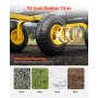 360° drehbare Räder: Ausgestattet mit 10-Zoll-Gummireifen und Metallnaben sorgen die Räder dieses robusten Gartenwagens aus Stahl für eine reibungslose Bewegung auf verschiedenen Untergründen, darunter Gras, Schlamm, Felsen und Schnee. Sein robustes Design sorgt für Stabilität und reduziert gleichzeitig den für den Transport erforderlichen Kraftaufwand.