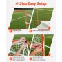 VEVOR-Aufbauanleitung für Lacrosse-Tor: Pfosten zusammenbauen, Rahmen aufstellen, Netz mit Riemen befestigen, Kanten sichern.