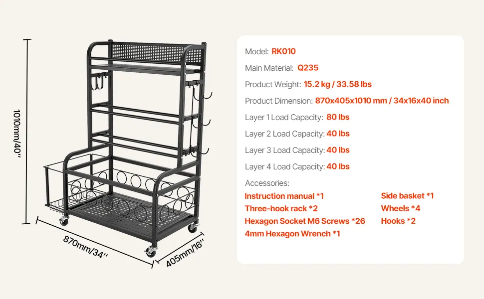 Eine ausführliche Montageanleitung ist im Lieferumfang enthalten und ermöglicht eine einfache Montage. Dank des einfachen Aufbaus und der Montageanleitung ist dieses Aufbewahrungsregal für das Heimfitnessstudio leicht zu installieren. Das Regal wird mit allem notwendigen Zubehör geliefert.