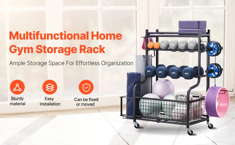 Geeignet für verschiedene Umgebungen: Dieses All-in-One-Rack für Heimtrainings- und Fitnessgeräte eignet sich perfekt zum Ordnen von Gegenständen in Fitnessstudios, Schulen und anderen Sportstätten und sorgt mühelos für Ordnung und Ordnung in Ihrem Raum